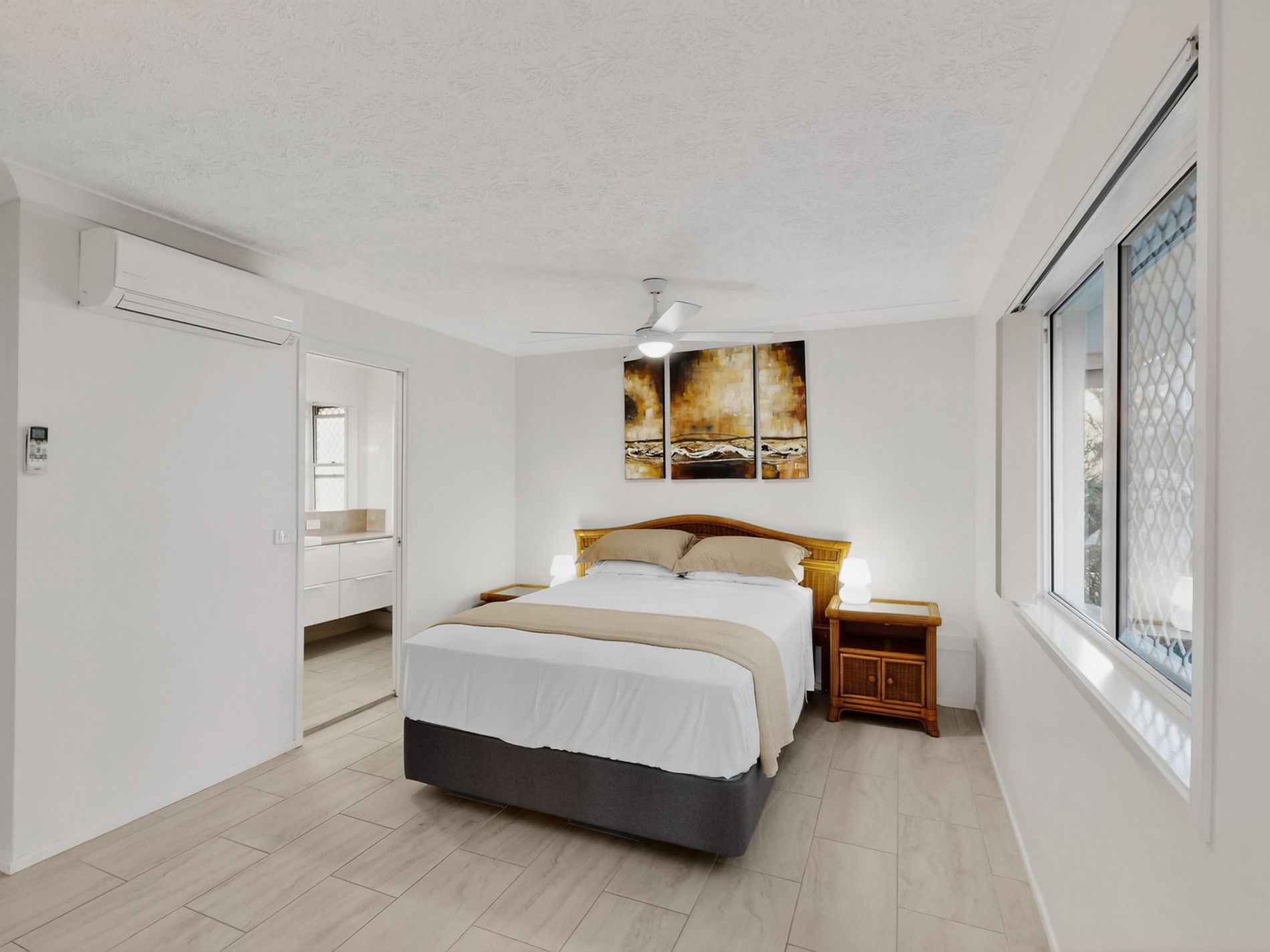 * 3 Spacious Bedrooms offering a bright and airy feel. All rooms have built-in wardrobes and ceiling fans, the main bedroom with split system air-conditioning and a modern ensuite with floor to ceiling tiles.